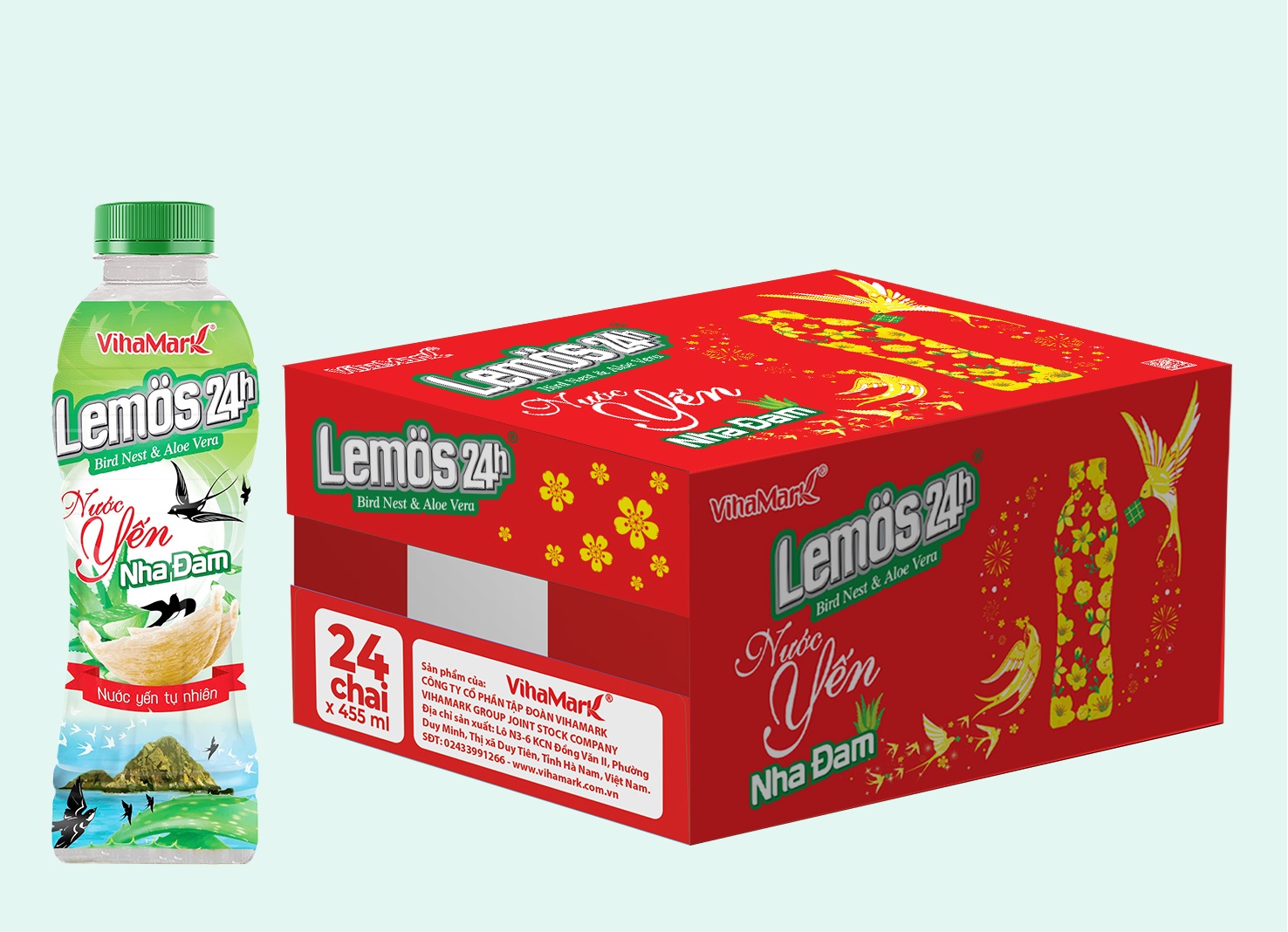 | Quy cách: | Chai PET (24 chai/thùng) | |