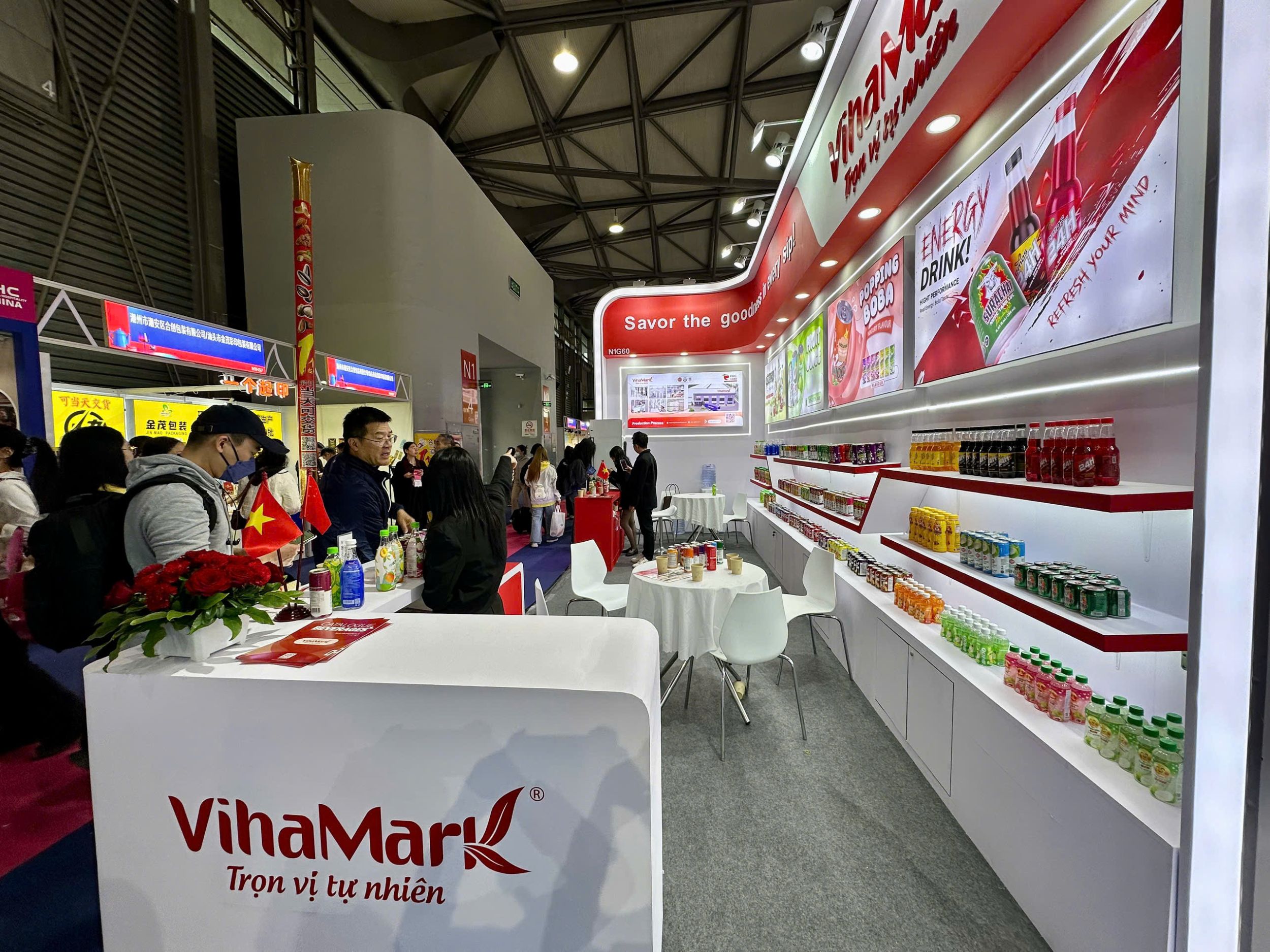 Tại FHC China 2025, Vihamark giới thiệu danh mục sản phẩm đồ uống đa dạng, được nghiên cứu và sản xuất theo các tiêu chuẩn chất lượng quốc tế, đáp ứng xu hướng tiêu dùng hiện đại. Nổi bật gồm các dòng nước tăng lực, nước trái cây, trà , nước bù điện giải ... cùng nhiều sản phẩm khác. Mỗi sản phẩm đều được chú trọng từ chất lượng hương vị, công nghệ sản xuất đến thiết kế bao bì nhằm mang đến trải nghiệm tối ưu cho người tiêu dùng.